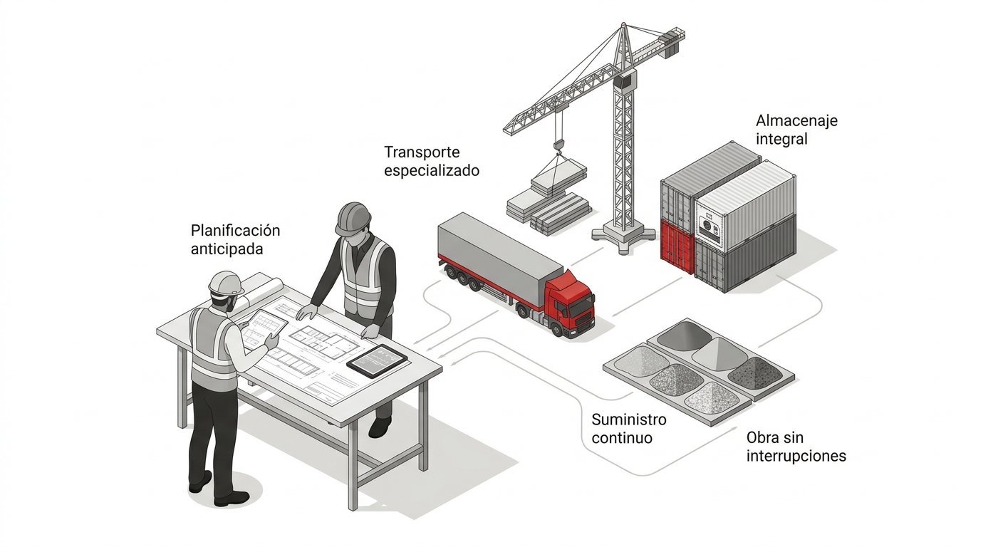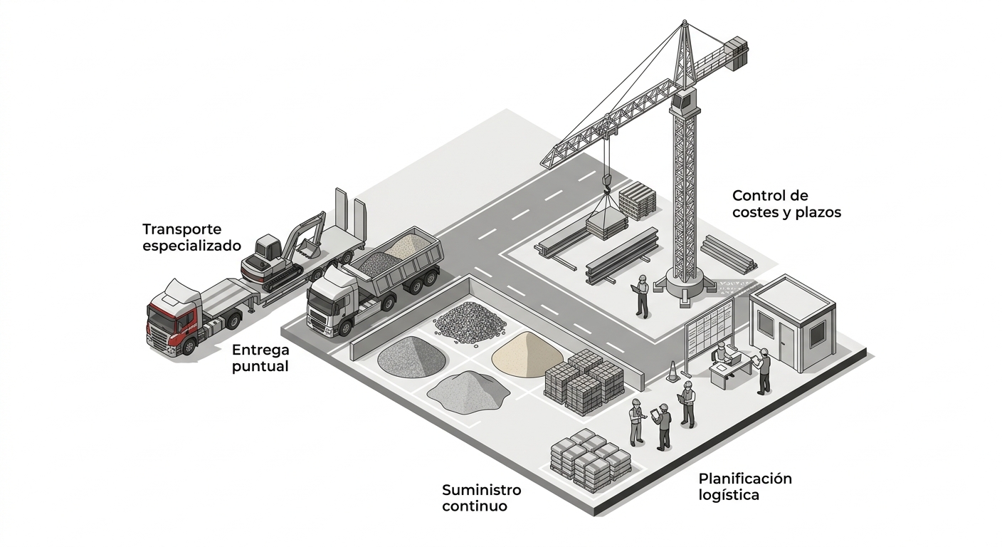 La correcta coordinación entre el transporte dedicado, los grupajes diarios y el suministro continuo de materiales, incluidos los áridos construcción, asegura un flujo constante en obra. Cuando la logística funciona, la obra avanza sin interrupciones y el margen del proyecto se protege desde el primer día.