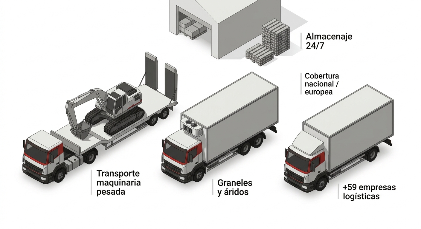 Además, existen empresas orientadas a nichos específicos como el transporte de graneles y pulverulentos —clave para materiales y áridos construcción— o la distribución en frío, así como operadores con trayectoria consolidada en logística general y transporte nacional e internacional.