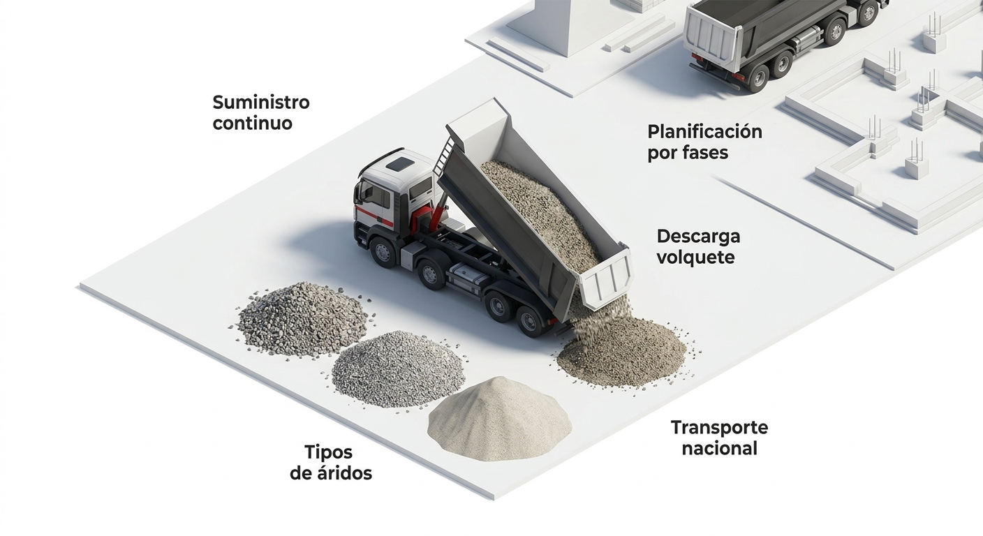 En cualquier proyecto constructivo, el suministro continuo de materiales es tan crítico como la propia ejecución técnica. Dentro de estos materiales, los áridos construcción —arena, grava, zahorras o mezclas específicas— tienen un papel estructural en cimentaciones, firmes, hormigones y rellenos. Una interrupción en su llegada puede detener hormigonados, compactaciones o trabajos de urbanización, generando sobrecostes y retrasos difíciles de absorber.